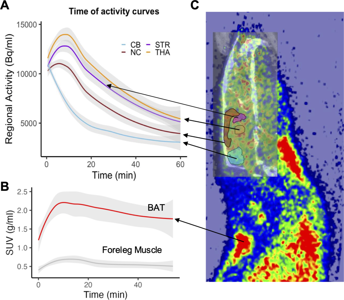 本研究重新分析了先前來自 9 隻大鼠(共 30 次掃描)的 [11C]carfentanil Positron Emission Tomography (PET) 數據,這些數據測量了在不同光週期下腦部與 BAT 中的 MOR 可用性。
